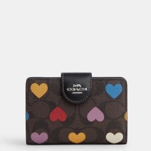 Coach Medium Corner Zip Wallet In Signature Canvas With Heart Print