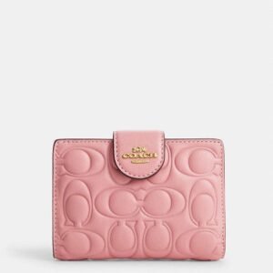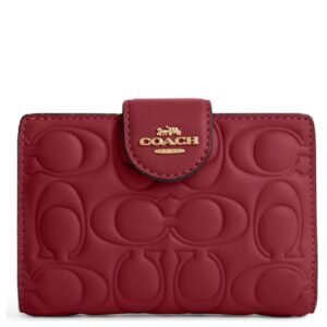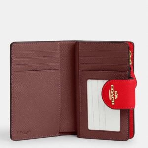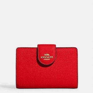 Coach Medium Corner Zip Wallet in Bright Poppy in gold accessories