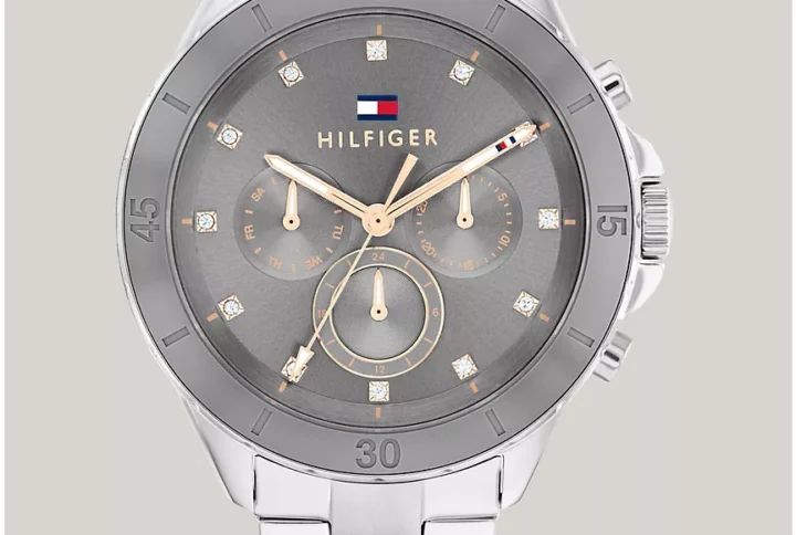 - Weekday sub-dial at 9 o’clock, 24-hour sub-dial at 6 o’clock, date sub-dial at 3 o’clock.